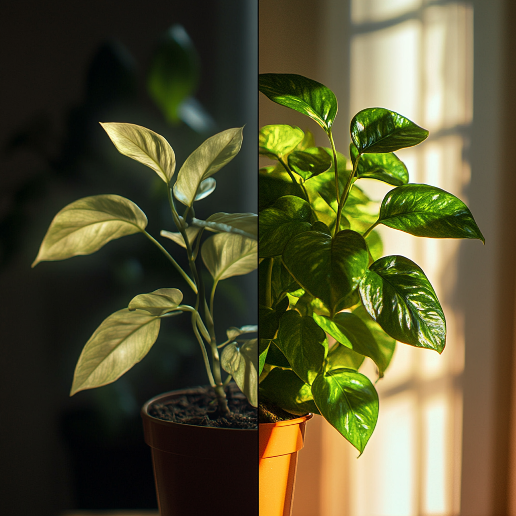 - 새순이 자라는 중이라면, 빛에 민감한 연한 잎은 없는지