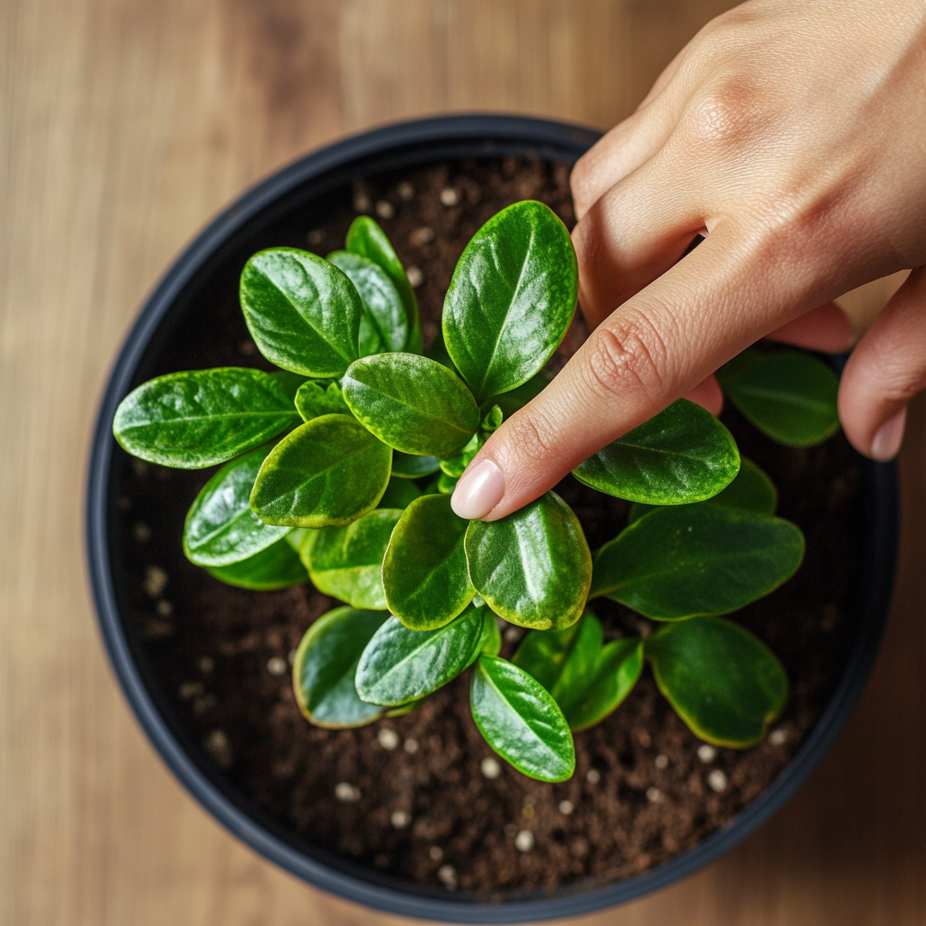 화분 흙을 손가락으로 약 2~3cm 눌러보세요.- 흙이 축축하다면 아직 물을 줄 필요가 없습니다.