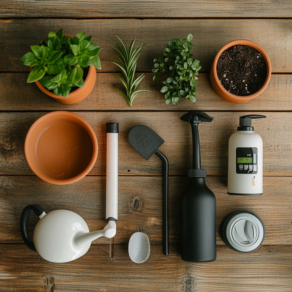 정확한 타이밍만큼이나 중요한 것이 도구 선택입니다. 실내 식물은 뿌리 손상, 흙 손실, 수분 과다 등에 쉽게 노출되기 때문에 섬세한 물주기를 도와줄 도구들이 필요해요.