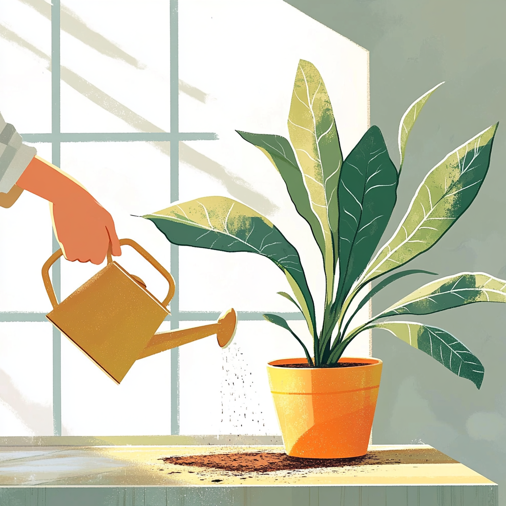 많은 분들이 실내식물의 성장이 느려질 때 가장 먼저 ‘물을 더 줘야 하나?’라는 생각을 하시곤 해요. 하지만 오히려 과한 물주기가 뿌리의 활력을 떨어뜨리고 성장을 방해하는 원인이 되기도 한답니다. 뿌리가 물에 잠긴 시간이 길어지면 뿌리 호흡이 어려워지고 결국 썩게 되는데요, 이로 인해 식물 전체의 생장이 느려지고 심하면 생명력을 잃게 돼요. 따라서 성장 속도가 늦어졌다고 느껴지더라도 흙을 먼저 손으로 눌러보거나, 젓가락 같은 것으로 깊이를 찔러보아 토양 속 수분 상태를 확인한 후에 물을 주는 것이 중요합니다. 또한 물은 아침 시간에 주는 것이 가장 좋으며, 잎에 물이 닿지 않도록 조심해서 흙에만 집중해 주세요. 잦은 분무가 오히려 병해충을 유발할 수 있기 때문에, 건조한 계절이 아니라면 너무 자주 분무하는 것도 피해야 해요.