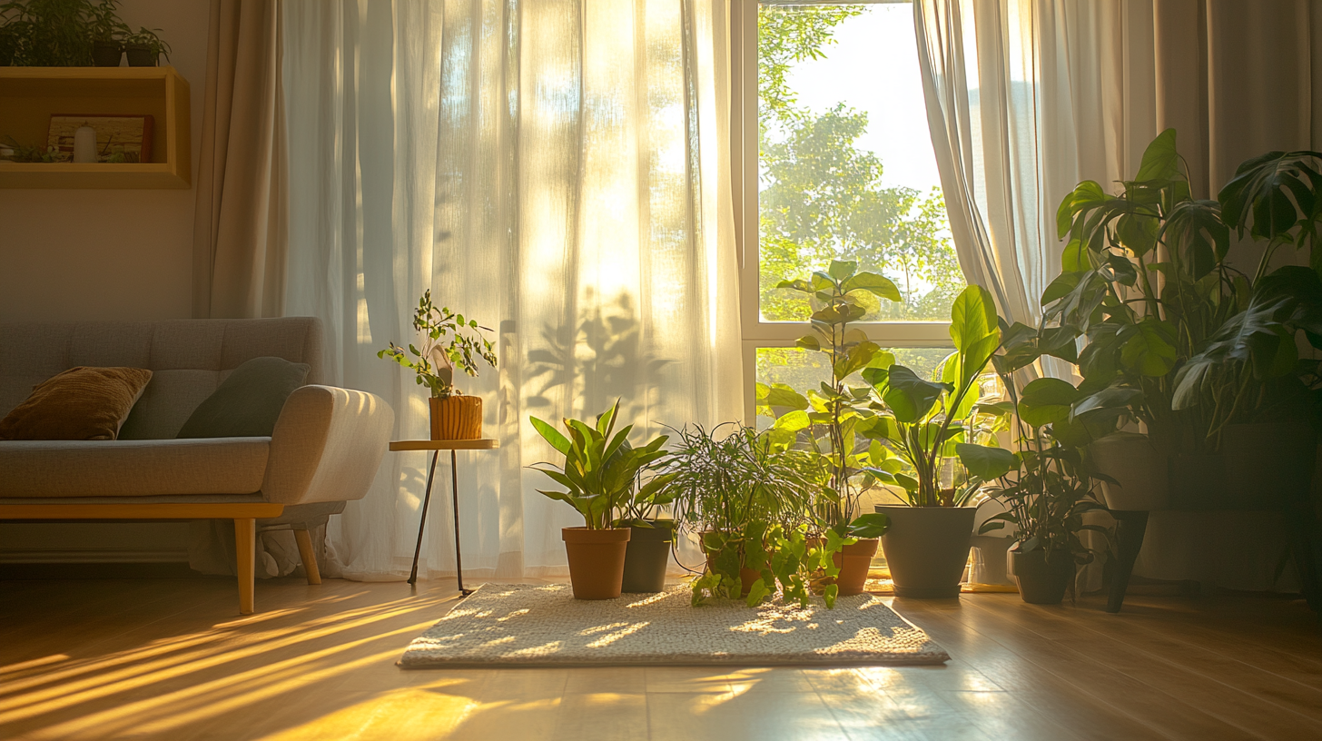 - 반음지/음지 식물: 북향 창가나 실내 깊숙한 곳에 두어 강한 빛으로부터 보호합니다. 잎이 얇은 식물일수록 일소 현상에 취약합니다.